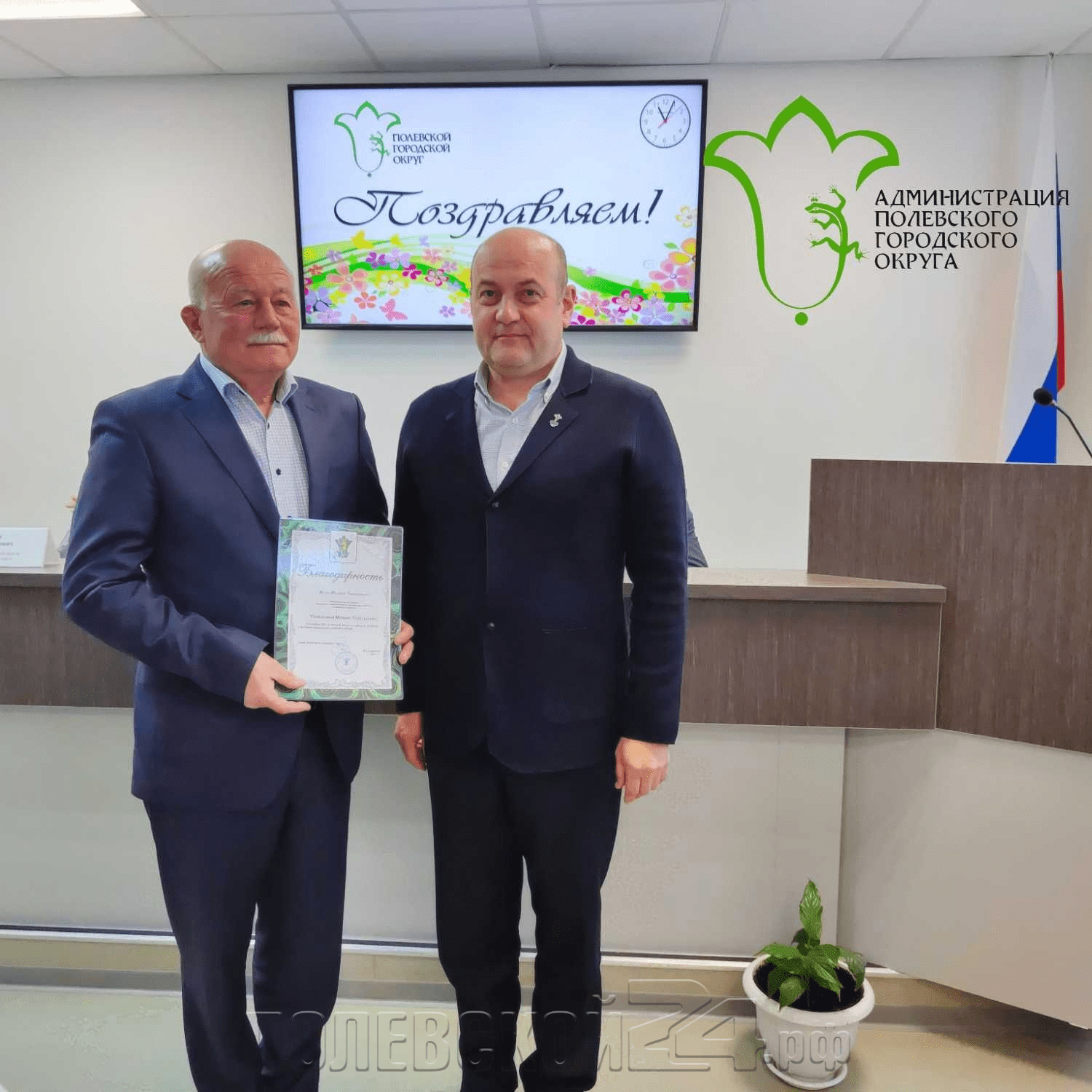 За личный вклад в поддержку полевчан – участников специальной военной операции — Михаилу Волку, генеральному директору общества с ограниченной ответственностью «Уральский мрамор», и Дмитрию Малееву, директору общества с ограниченной ответственностью СК «Регион газ».