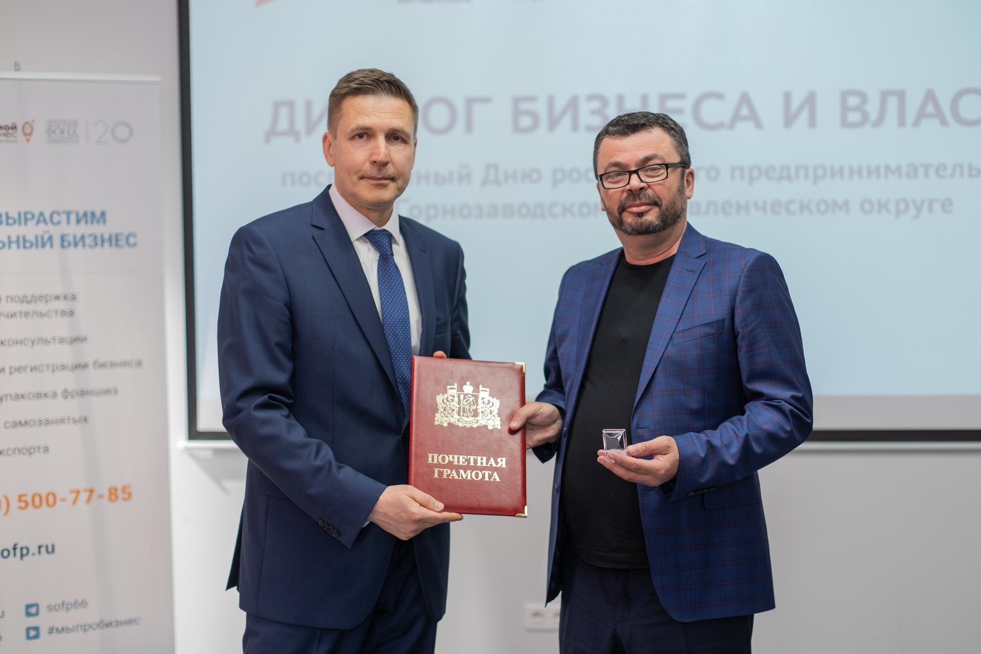 В ходе прошедшей в Нижнем Тагиле встречи благодарственными письмами и грамотами губернатора Свердловской области и Министерства инвестиций и развития были отмечены предприниматели: Михаил Верхотуркин, Роман Жуков, Юрий Афенк, Вячеслав Медведев, Игорь Бабин.