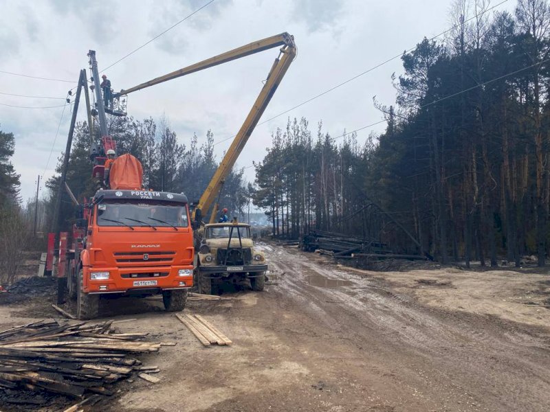 В пострадавшем от сильных пожаров свердловском поселке Сосьва на аварийно-восстановительных работах трудятся почти 30 энергетиков «Россети Урал», а также 10 единиц техники.