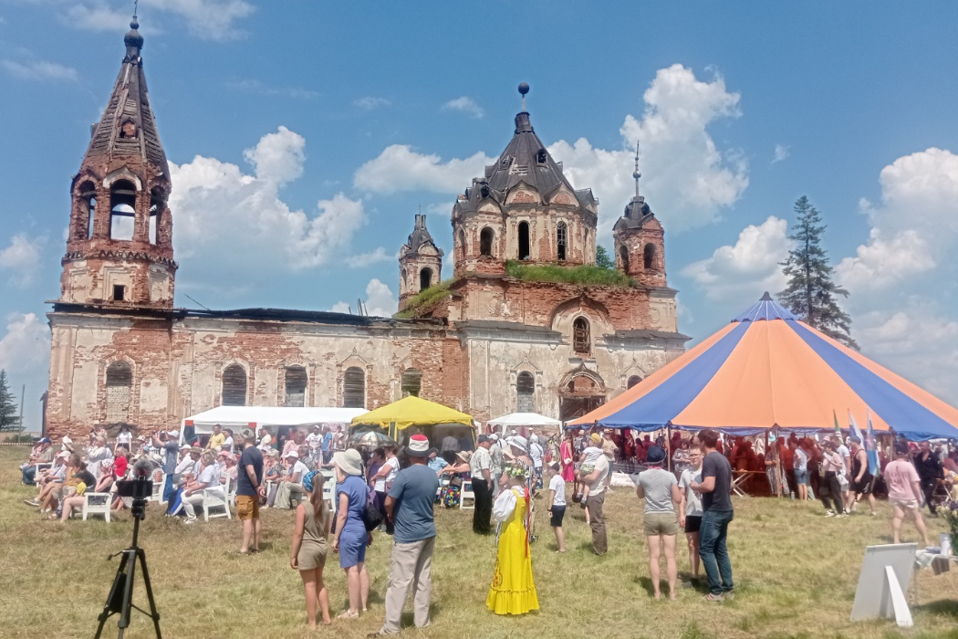 На большой поляне около Троицкой церкви, которую специально к празднику подготовили жители села, собрались около сотни мастеров по камню, дереву, ювелирному стеклу, вышивке, валянию; травники, мыловары, вязальщицы, ткачи и многие другие. Представители народностей, проживающих на Урале, представили свои национальные подворья.