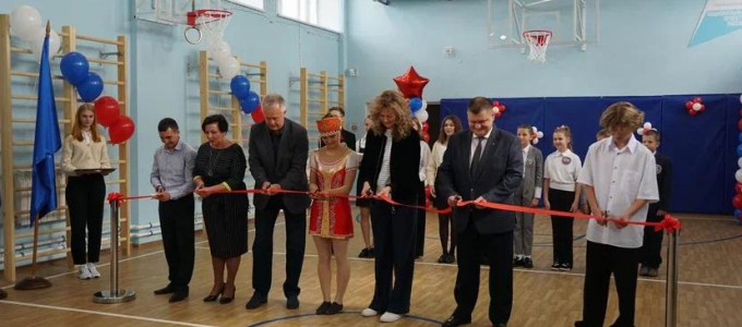 Михаил Ершов принял участие в открытии отремонтированного спортзала школы № 10 села Покровское