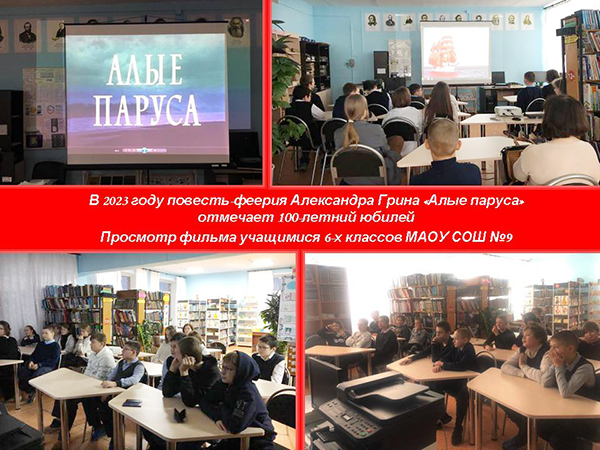 В связи с этой датой в Щелкунской сельской библиотеке для учащихся 6-х классов, был организован показ художественного фильма Александра Птушко «Алые паруса». «Алые паруса» – это красивая, благородная, нежная история о верности, мечте и любви.