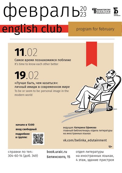 В феврале Английский разговорный клуб приглашает всех желающих усовершенствовать свое знание английского языка.