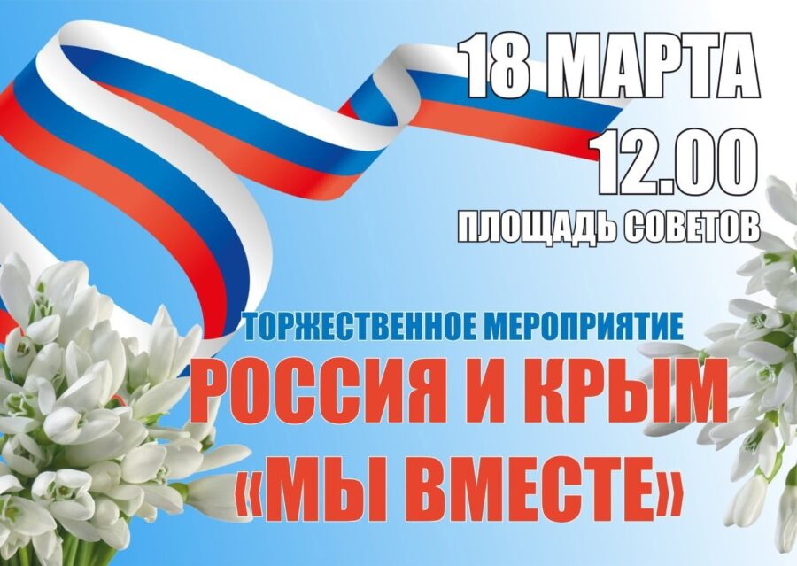 Уважаемые жители Артемовского городского округа! Приглашаем Вас на торжественное мероприятие, посвященное Дню воссоединения Крыма и Севастополя с Россией,которое состоится 18 марта в 12:00 в г.Артемовский на площади Советов.