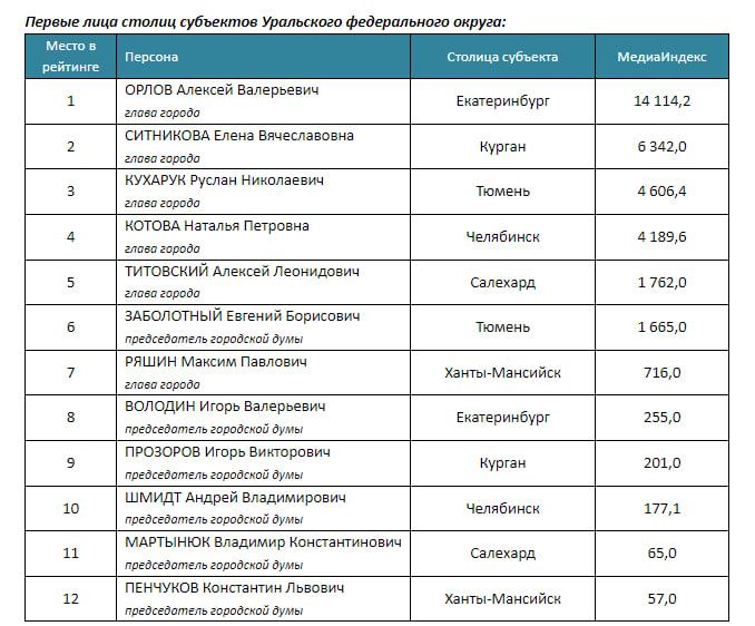 На втором месте медиарейтинга — глава Кургана Елена Ситникова. Замыкает тройку — мэр Челябинска Натаья Котова.