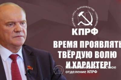 Да, настало время проявлять твёрдую волю и характер, как сказал Зюганов, но сам он проявляет беспринципность, оппортунизм и социал-шовинизм.