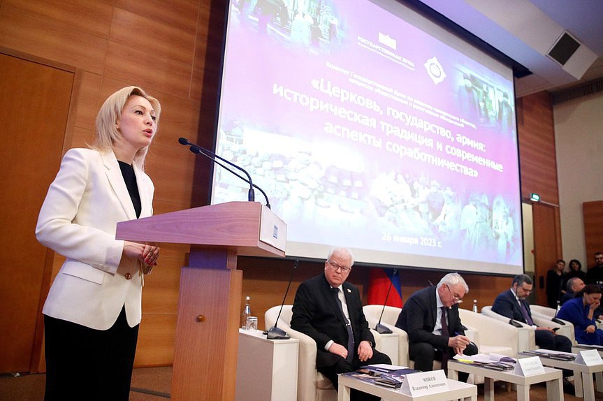 «Идет война. Наши бойцы на передовой должны знать, что мы с ними, тоже боремся за страну, как можем приближаем победу. Нашим бойцам нужны духовные наставники. В окопах нет неверующих, там все живут с молитвой. Сегодня до конца не урегулирован статус священников в войсках и на флоте. Есть разные точки зрения. Но нет времени на бюрократию. Этот вопрос надо решать. Определять правовой статус священнослужителей, давать им гарантии, аналогичные военнослужащим — участникам СВО. Давать гарантии семьям погибших священников. Нами, совместно с Комитетом по обороне, принято решение о создании на площадке Госдумы специальной рабочей группы, чтобы ускорить решение этих вопросов», — заявила председатель Комитета Госдумы по развитию гражданского общества Ольга Тимофеева.