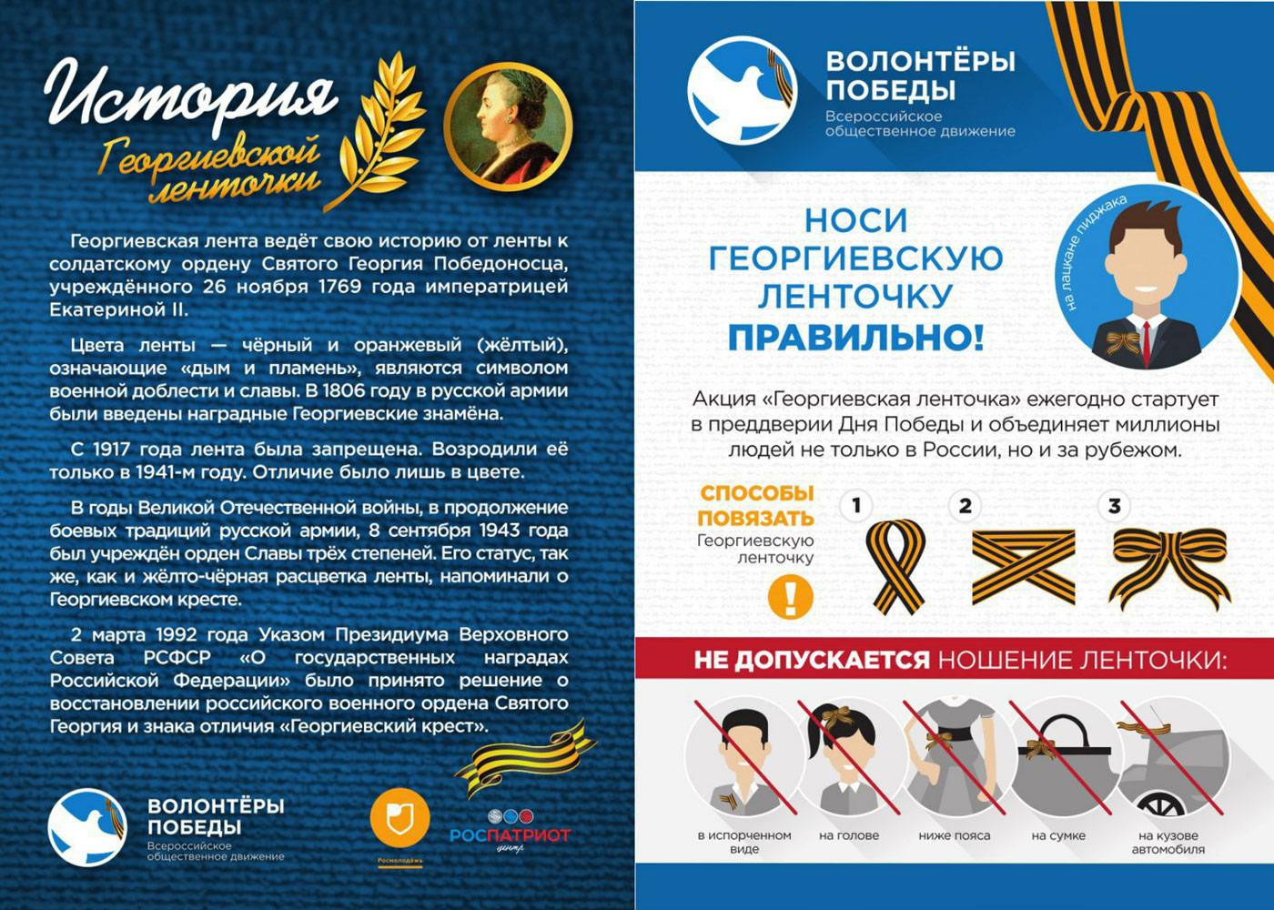 Георгиевская лента стала символом Дня Победы, к которому наше государство относится наиболее трепетно, считая его главным государственным праздником в стране, сравнительно недавно. В 2005 году, в год 60-летия Победы, по инициативе федеральных властей государственным и провластным РИА «Новости» была запущена акция «Георгиевская ленточка». Ленты бесплатно раздавали всем на улицах города, продавать ленты считалось неэтичным. К акции присоединилась и наша редакция: вплоть до 2015 года мы ежегодно заказывали и раздавали на улицах города черно-оранжевые ленты.