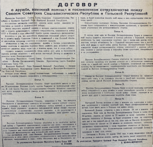 «Этот договор будет способствовать экономическому развитию народов Советского Союза и Польши, что отвечает жизненным интересам обеих стран. Этот договор будет поддерживать дело мира и безопасности. Мы с радостью жмем руки братскому польскому народу!» – говорила на митинге бригадир-шихтовщик т. Бурлицкая.