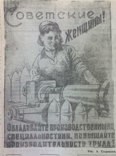 Международный женский день, отмечаемый 8 марта, в Советском союзе достаточно быстро перестал быть символом протеста против неравенства и превратился в день прославления женщины как стахановки, коммунистки, матери. В прессе военных лет женщина – это не только верная спутница мужчины, но и еще и труженица, заменившая его у станка и наравне с сильным полом ковавшая Победу.