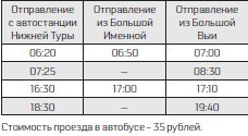 Как сообщила директор ООО «СпецРесурс» Марина Горностаева, с 1 февраля начнет действовать новое расписание маршрута № 105 Нижняя Тура – Большая Выя – Нижняя Тура.