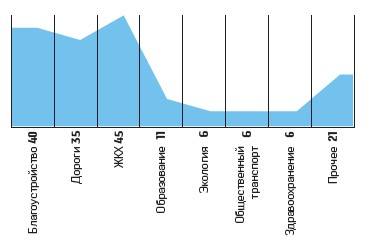 Чаще всего темами сообщений становились вопросы содержания и ремонта дорог (2013), вопросы благоустройства территорий (1715) и жилищно-коммунальное хозяйство (1521).