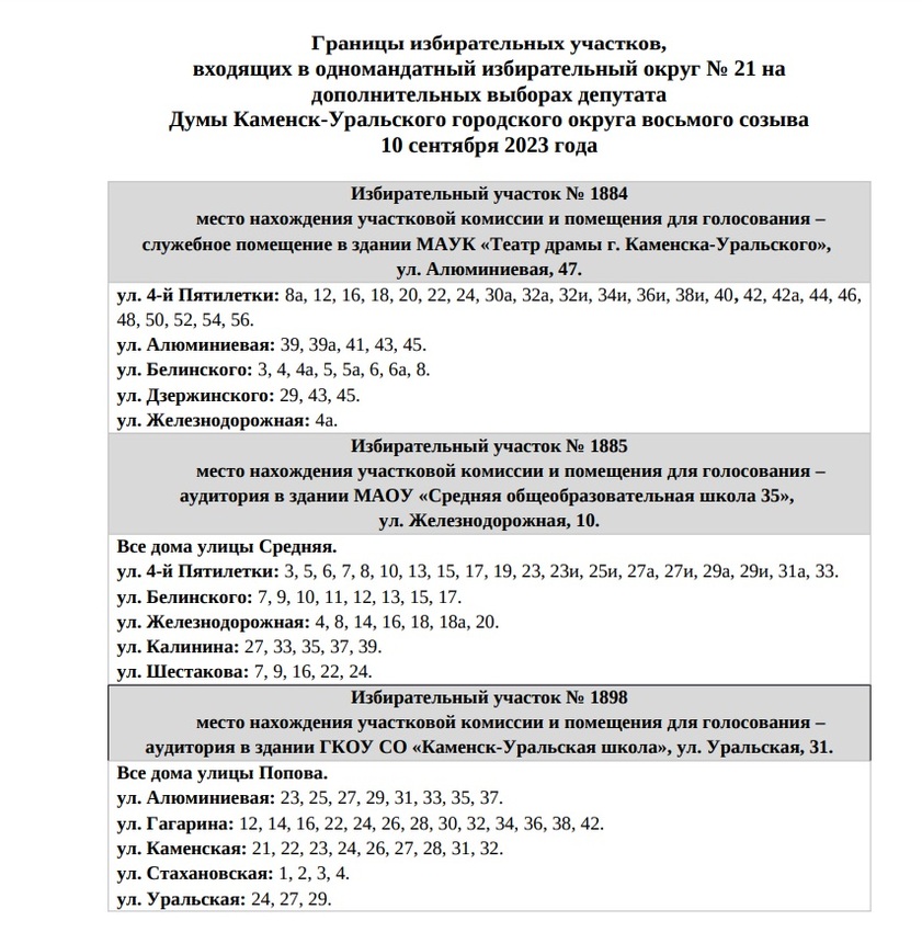 ДЭГ на выборах депутата Думы Каменска-Уральского по округу № 21