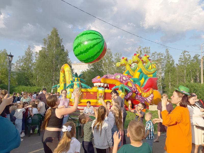 Еще мастерская Бабы Яги, автодром Синего трактора, аллея художника Тюбика, пожарная машина МЧС и стенд с атрибутами, мыльное пузырь-шоу, аттракционы, сладкая вата, батутный парк, воздушные шары, зеркальные люди, гигантские медведи и персонажи разных сказок и мультфильмов – всего не перечесть. Мальчишки и девчонки активно принимали участие везде, ни одна площадка не пустовала ни одной минуты.