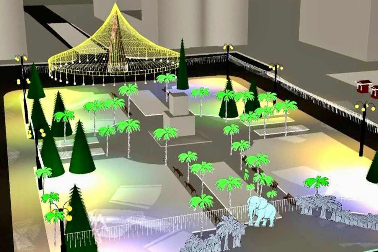 Театральная площадь по задумке скульптора и автора идеи Эдуарда Пономаренко будет оформлена в африканском стиле, отсылая к стихотворению советского поэта. Помимо искусственных пальм, в Новый год тагильчан порадуют крокодил, бегемот, носорог, горилла и слон. Последнего в мэрии обещали выполнить в натуральную величину. Кроме того, ледяные горки будут оформлены в стиле пиратского корабля и солнца.