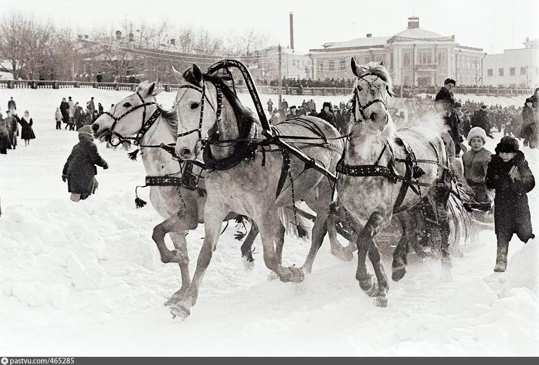 На улицах города гуляющие катались на лошадях, запряженных в легкие кошевки или просто розвальни. Уздечки лошадей украшались разноцветными лентами, под дугой звенели колокольчики.