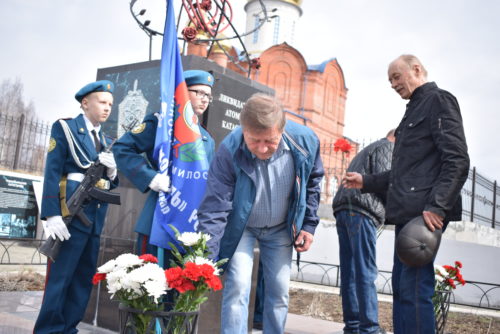 Тех, кто погиб при исполнении гражданского долга, присутствующие почтили память минутой молчания и в честь них возложили цветы к памятному знаку.