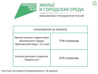 Напоминаем, что отдать свой голос за один из проектов благоустройства общественной территории в Берёзовском вы можете на сайте https://za.gorodsreda.ru . Голосование продлится до 31 мая.