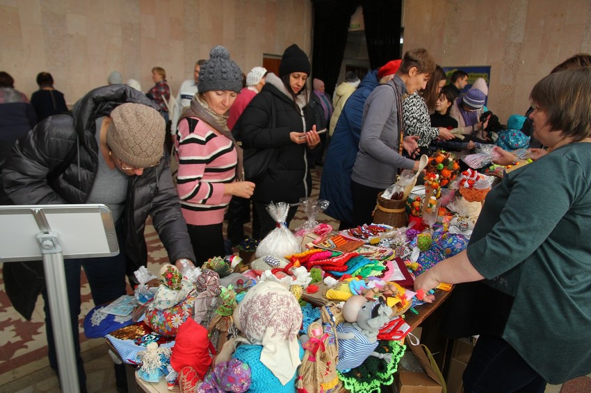 Одновременно с концертом с 13:00 до 16:00 в фойе СКЦ каменские ремесленники, волонтеры, общественники представляли свою продукцию и проводили мастер-классы.