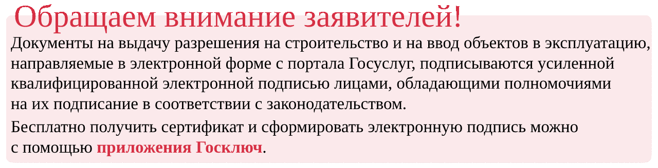 Выдача разрешения на ввод объекта в эксплуатацию Выдача разрешения на строительство объекта капитального строительства (в том числе внесение изменений в разрешение на строительство объекта капитального строительства и внесение изменений в разрешение на строительство объекта капитального строительства в связи с продлением срока действия такого разрешения) Направление уведомления об окончании строительства или реконструкции объекта индивидуального жилищного строительства или садового домаНаправление уведомления о планируемых строительстве или реконструкции объекта индивидуального жилищного строительства или садового дома