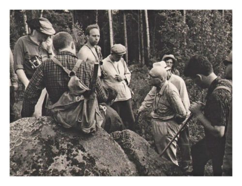 Качканарский краевед уточняет, что на этой фотографии профессор запечатлен вместе с качканарскими геологами. К сожалению, никого из них уже нет в живых, поэтому не представляется возможным узнать подробности этого подъема на гору Качканар.