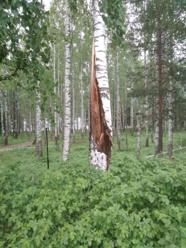 1 июня, примерно в половине седьмого, он вышел на пробежку опять к тому же злополучному месту — дерево уже упало. Но упало оно не одно, а сломало и вторую березу.