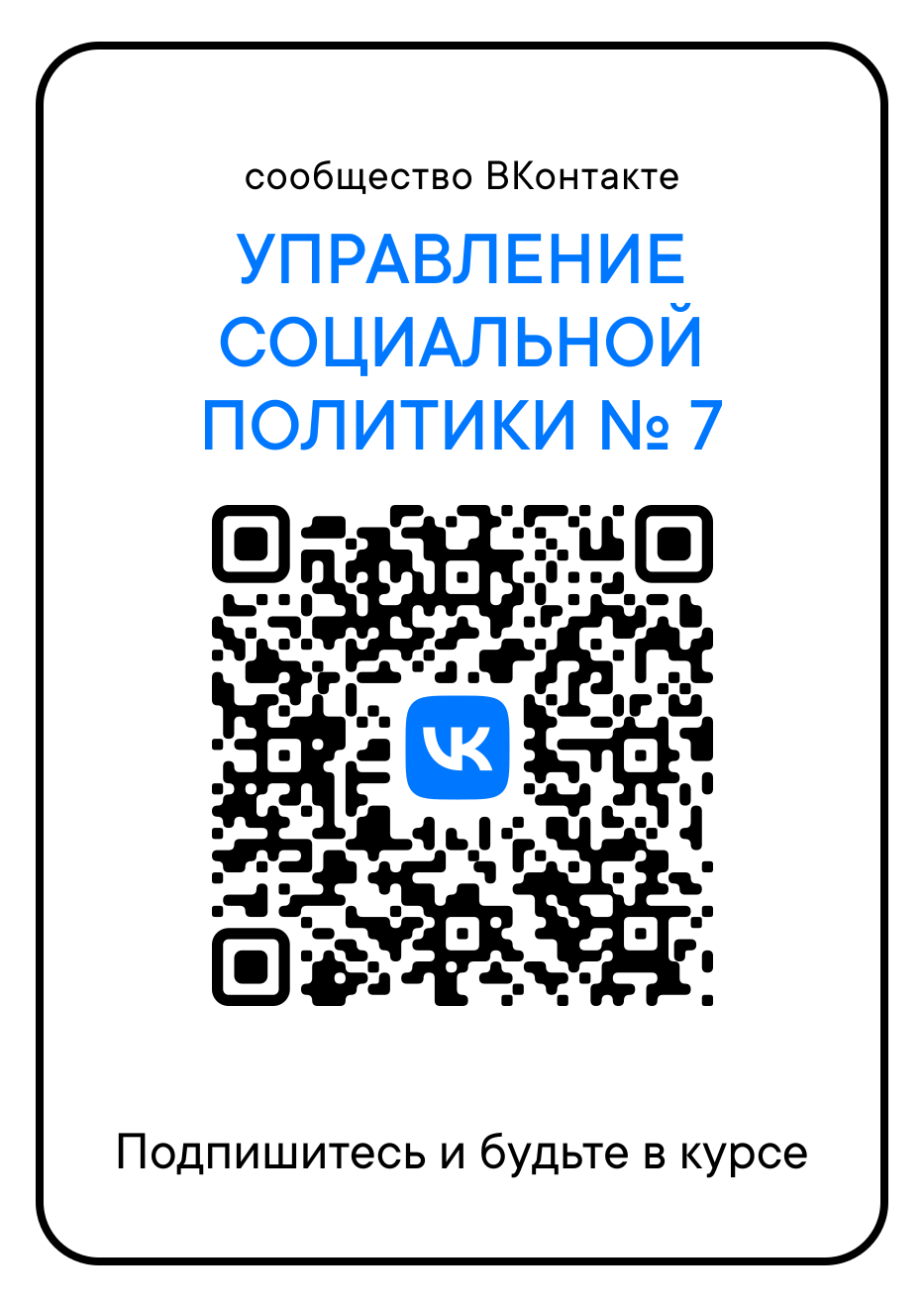 Приглашаем присоединиться к сообществу Управления социальной политики №7!