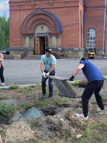 Мечта по озеленению храма стала осуществима благодаря совместным усилиям. В приобретении саженцев декоративных кустарников помогли качканарские меценаты и благотворители.