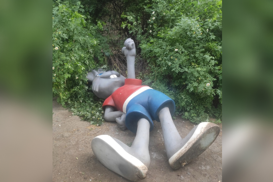 В Екатеринбурге с клумбы в Пионерском сбросили фигуру зайца из «Ну, погоди!»