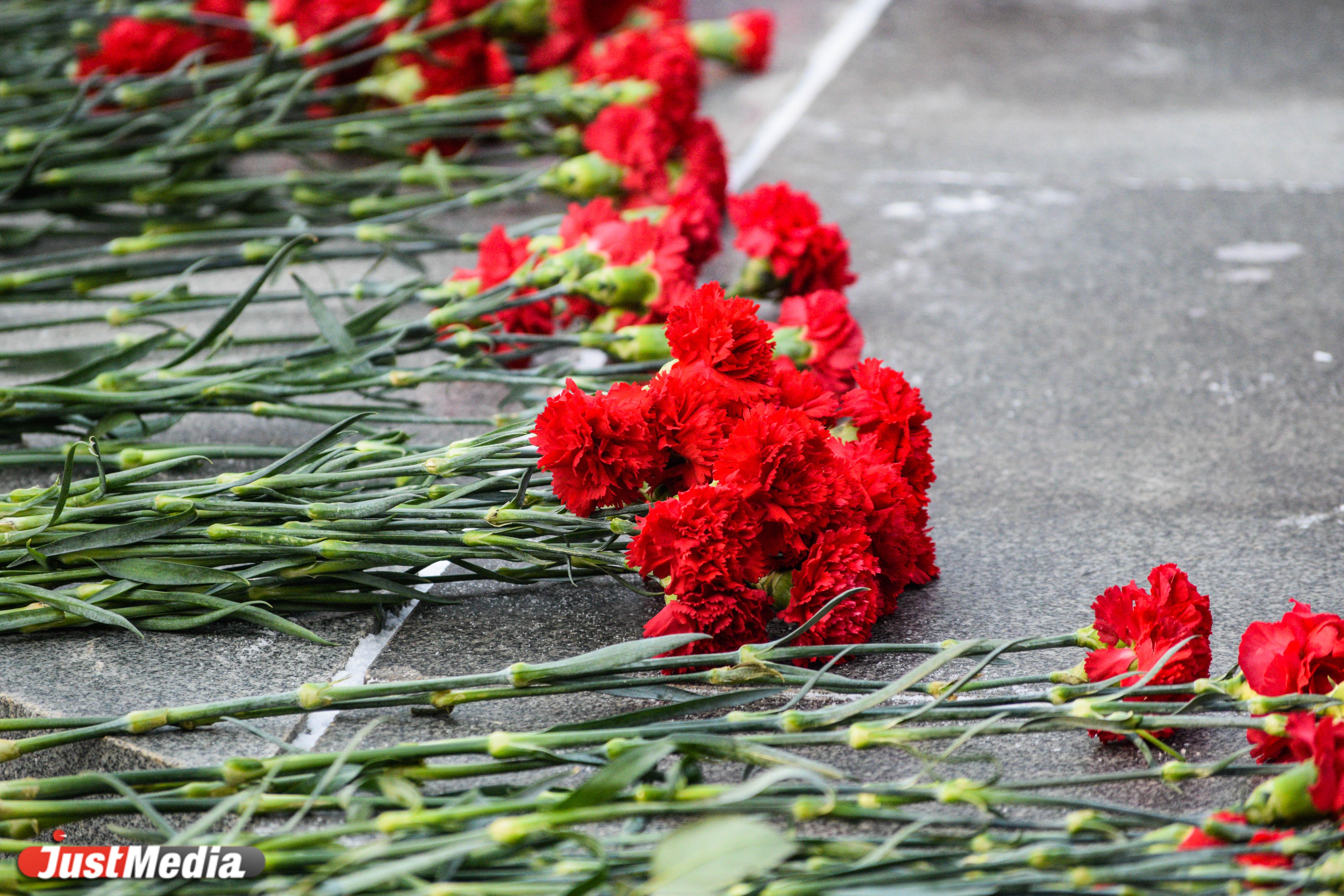 Цветы к памятнику возложили вице-губернатор Олег Чемезов, заместитель губернатора Азат Салихов, временно исполняющий обязанности командующего войсками ЦВО Александр Линьков, министр общественной безопасности Александр Кудрявцев, председатель Свердловской областной общественной организации ветеранов Юрий Судаков, представители администрации Екатеринбурга, ветераны Великой Отечественной войны, юнармейцы и кадеты.