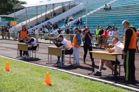 На старт эстафеты вышли 50 команд – мужские, женские, смешанные в трех возрастных категориях. Напомним, что летний биатлон представляет собой комбинацию бега и стрельбы из лазерной винтовки. В этом году правила были обновлены и на беговой дорожке появились новые задания: пресс и два вида прыжков.
