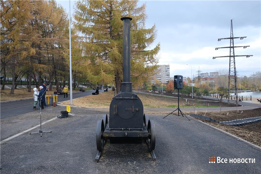 Для маленьких тагильчан оформили игровое пространство – все оно покрыто песком. Здесь установили качели для детей разных возрастов, горки и лазалки, большую песочницу. Еще до официального открытия ученики из соседней школы №30 сбежались на площадку. Они рассказали журналисту ИА «Все новости», что планируют приходить сюда после уроков. Рядом с детской зоной установили паровоз, созданный тагильским скульптором Эдуардом Пономаренко, почти такой же, как у Черепановых. По газону пустили импровизированную железную дорогу, ездить по ней паровоз не сможет, но дети с удовольствием выполняют его функцию и прокладывают свой маршрут по узкоколейке. А сам исторический арт-объект, как и планировалось, стал фото-зоной.