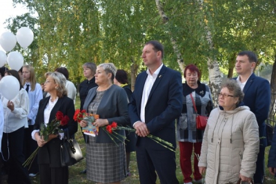 В церемонии приняли участие близкие погибшего бойца, ученики и педагоги школы, глава округа Миронов В.В.