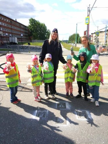 На прошлой неделе сотрудники Госавтоинспекции и ребята детского сада «Улыбка» провели акцию «ПДД на асфальте», нанеся надписи на асфальте вблизи пешеходных переходов и перекрестков, напоминающие правила безопасного перехода проезжей части дороги.