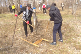 Субботники у городских организаций начались ещё на неделе, порядок на своих территориях также наводят сотрудники комбината «Электрохимприбор» и управляющих компаний.