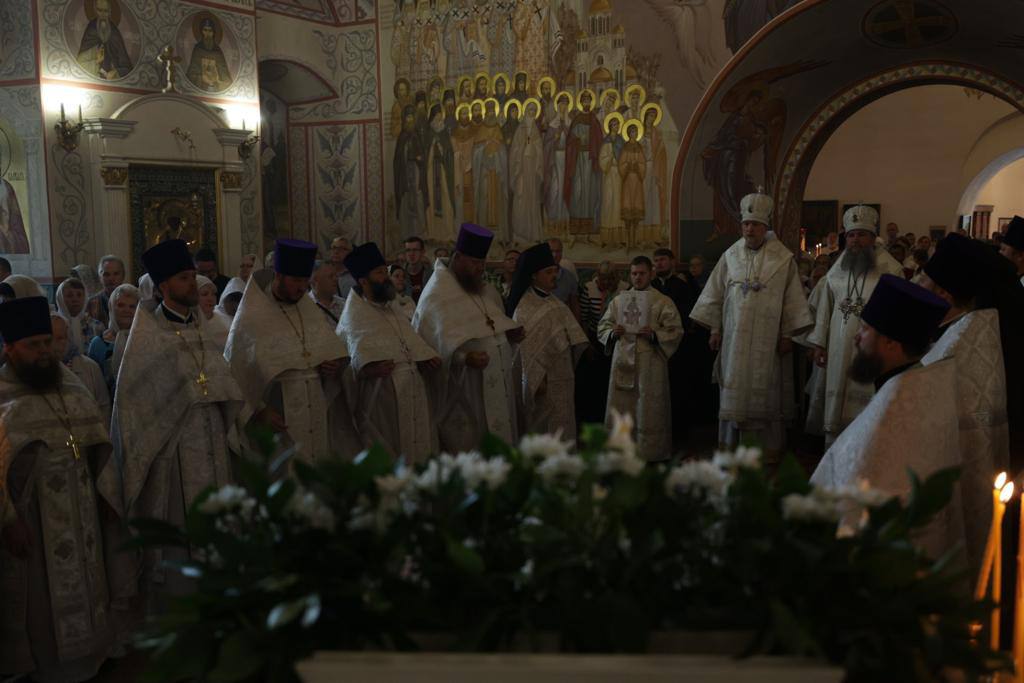 За богослужением Высокопреосвященным владыкам сослужили: секретарь Екатеринбургской епархии митрофорный протоиерей Николай Ладюк, руководитель службы протокола Екатеринбургской епархии протоиерей Николай Тарантин, настоятель Свято-Троицкого кафедрального собора митрофорный протоиерей Николай Малета, благочинный Преображенского округа храмов иерей Евгений Гаёв, руководитель отделов Екатеринбургской епархии по взаимодействию Церкви с обществом и СМИ, по взаимодействию с казачеством протоиерей Максим Миняйло, настоятель храма «Большой Златоуст» иерей Виктор Явич, настоятель храма святителя Стефана Великопермского иерей Александр Карачёв, настоятель храма во имя иконы Божией Матери «Казанская» на Химмаше иерей Алексий Русин, настоятель храма во имя святителя Николая Мир Ликийских Чудотворца города Среднеуральска иерей Андрей Сибирцев, клирики Преображенской церкви и другие священнослужители Екатеринбургской епархии.