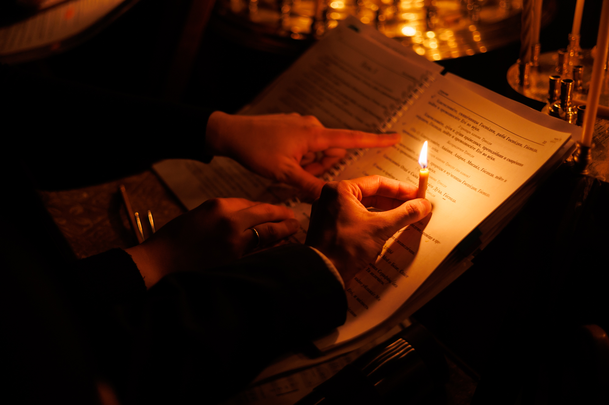 Один из самых трогательных моментов Литургии Преждеосвященных Даров – исполняемые по окончании чтений особым напевом стихи 140 псалма «Да исправится молитва моя…». Сегодня за богослужением это трогательное песнопение прозвучало в исполнении протодиаконов Игоря Романенко и Димитрия Тарантина, а также иерея Павла Кононенко. По традиции во время этого песнопения певчие выходят в центр храма к солее, а все молящиеся становятся на колени.