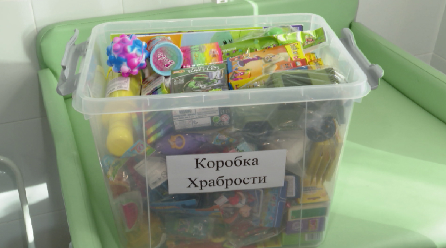 Эта коробка, словно мешок Деда Мороза полна сюрпризов и детских желаний. Только воплощают их не волшебники, а обычные жители Свердловской области. В течение месяца неравнодушные уральцы, делая покупки в гипермаркете, на выходе из кассовой зоны складывали вот в такие «Коробки храбрости» подарки, которые помогут маленьким пациентам проходить лечение в больнице. «Мы ведь как мамы понимаем, насколько это важно, когда ребенок приходит сдавать кровь, приходит сдавать какие-то другие анализы, ему всегда страшно, страшно только бывает даже от вида врачей, но здесь, взяв в руки эту красочную раскраску, либо маленькую игрушку, я думаю, весь страх пройдет, за это всем жителям спасибо!» — говорит ведущая программы «Вести. Уральский меридиан» Ольга Зиналиева.