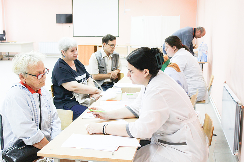 Волонтеры Краснотурьинского филиала Свердловского областного медколледжа развернули кардиопосты, где измеряли посетителям давление, пульс, проводили анкетирование для выявления групп риска по различным заболеваниям, а также вели профилактические беседы. Сельчан старшего поколения научили корректно пользоваться тонометром и правильно вести дневник самоконтроля. Для оперативности параллельно в двух кабинетах снимали кардиограмму. Прием пациентов вели кардиолог, невролог и терапевт, в процедурном кабинете можно было сдать анализ крови, для раннего выявления онкопатологий женщинам предложили пройти осмотр у акушерки и маммографию.