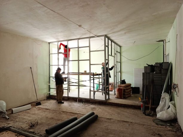 В больнице Асбеста строители ремонтируют кабинет для установки аппарата МРТ