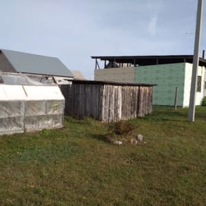 Дом из шлакоблока, подведена вода, есть выгребная яма, электричество 380v. Гараж 72 м2, есть смотровая яма, высокий потолок.