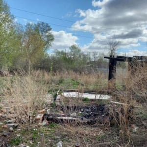 Участок 10 соток, дом после пожара. Газ подведен, скважина, электричество,юридический адрес. Фундамент под баню 3×6. Торг