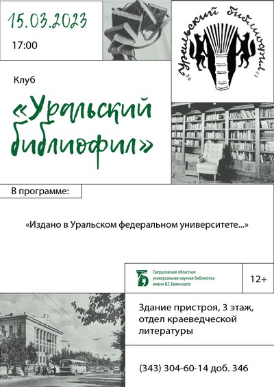 15 марта в 17:00 приглашаем на очередное заседание клуба «Уральский библиофил».