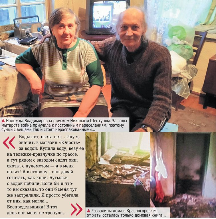 На руках у Надежды Владимировны три паспорта: украинский, российский и паспорт Донецкой Народной Республики. Это первое, что она по привычке показывает, чтобы хоть как-то объяснить положение, в котором она оказалась вместе с мужем Николаем... Там, в городе Красногоровка Марьинского района, им пришлось оставить свой дом и воспоминания о мирной жизни.